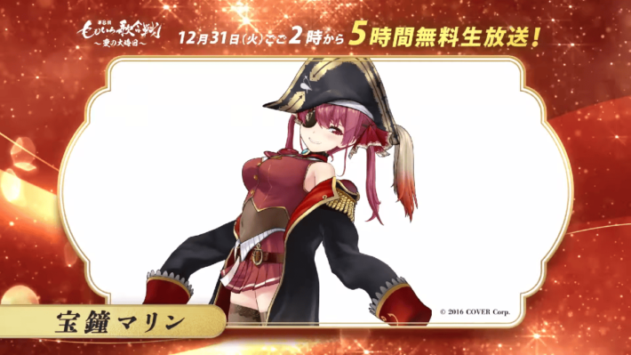 ABEMAは12月5日、ももいろクローバーZ主催の歌謡祭「第8回 ももいろ歌合戦 ~愛の大晦日~」の放送予定を公開。本イベントにカバー株式会社運営のVTuber事務所ホロライブプロダクションの日本グループ「ホロライブ」所 … 続きを読む 宝鐘マリンが日本武道館で開催の「第8回 ももいろ歌合戦」に出演決定